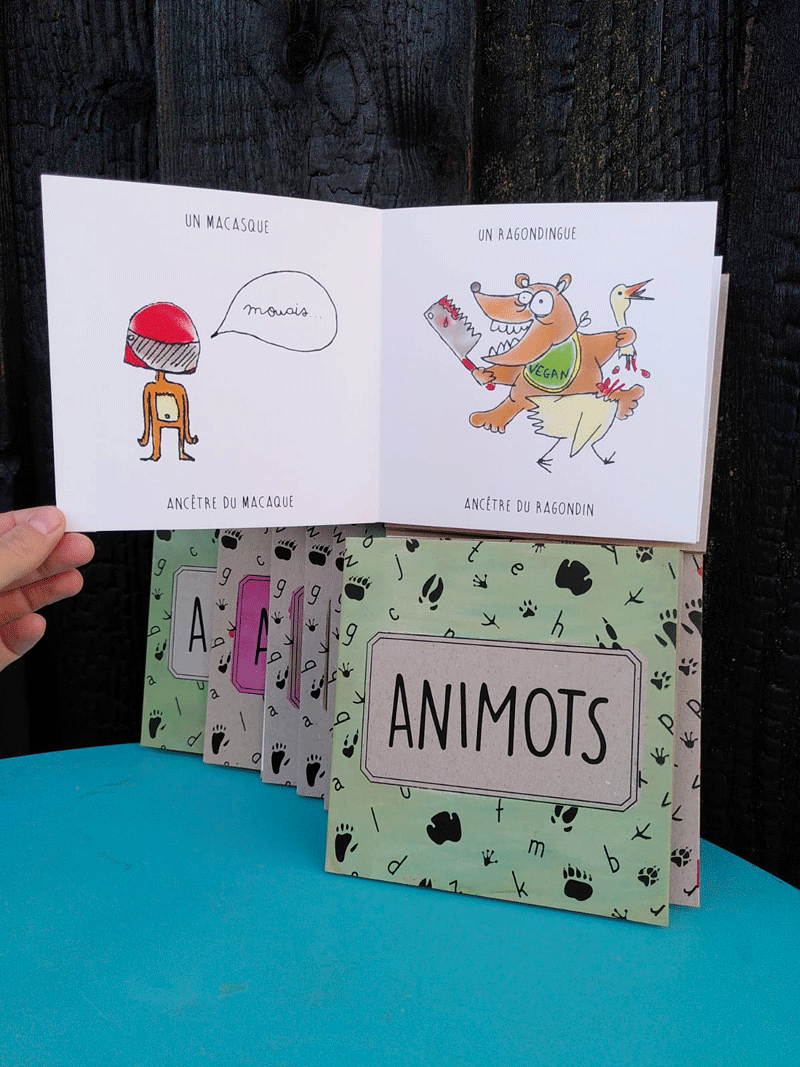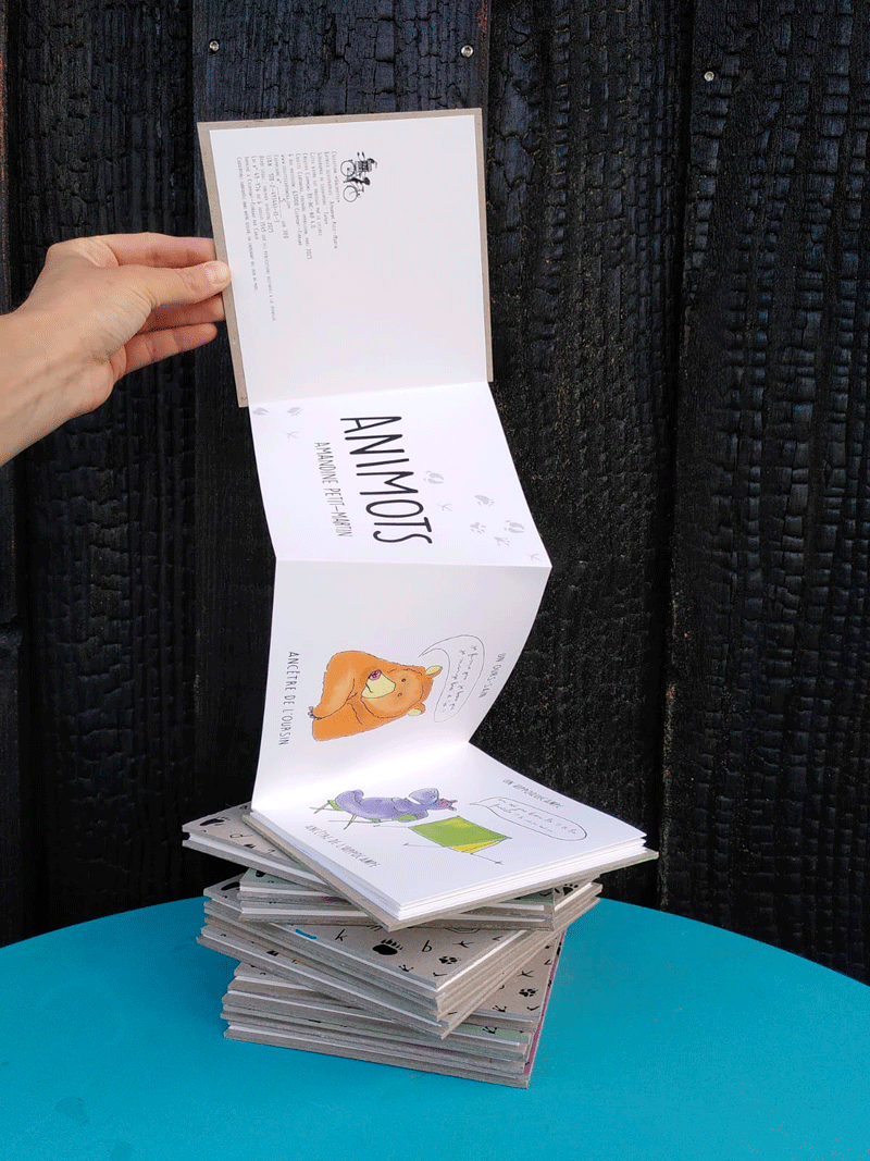 Animots est un leporello pour lire, rire, et dessiner des jeux des mots rigolos autour des animaux.